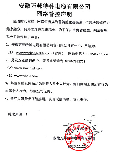 鄭重聲明:安徽萬邦特種電纜有限公司官方網站為:www_wanbangcable_com.hwy2013.com,除此之外無任何子網站或合作網站,其余均為假冒偽劣。電話:0550-7621728 13485756353 地 址:安徽省天長市滁州高新技術產業開發區經四路29號